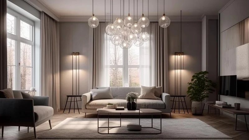 светлая гостиная в современном стиле Источник фото: Создано: (ИИ) ПАО СберБанк©