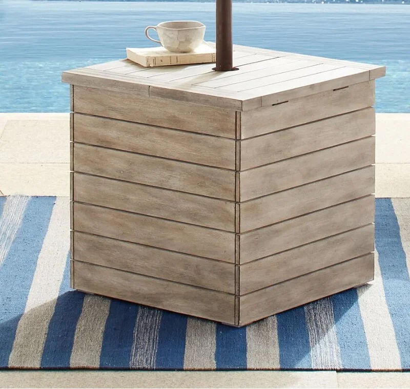 Столик-комод – удобное решение для уличного хранения мелких вещей, ведь в него можно сложить и посуду, и столовые приборы, и набор для шашлыков, и прочие полезные мелочи. Чем больше человек можно рассадить за таким столиком, тем больше вещей в нем можно хранить за счет его габаритов. Такой столик может быть выполнен как из дерева, так и из рогожки, что визуально сделает его легче и воздушнее.