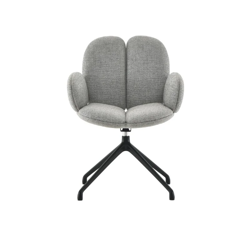Вращающийся стул с округлыми формами – лучшее решение для шумных застолий, где нужно быстро переключаться между собеседниками. Но возможно, вам захочется укатиться на нем к себе в кабинет, чтобы удобно устроиться за ноутбуком.