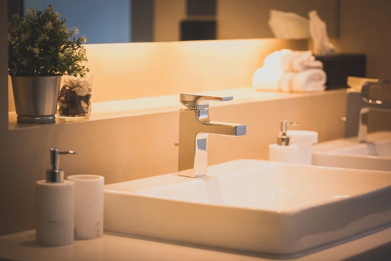 Декоративные элементы, такие как маленькие растения, камни или морские ракушки, придадут ванной комнате уют и стиль.