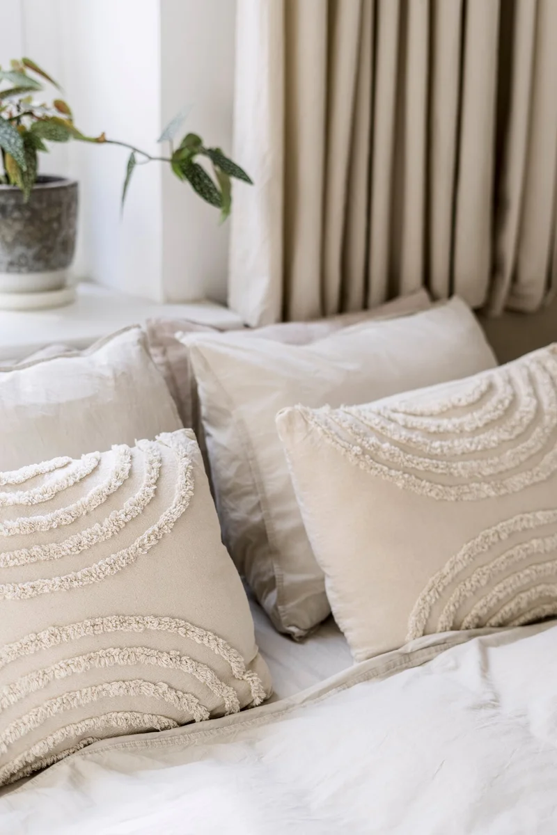 1. Натуральные материалы. Подушки из льна, хлопка или шерсти добавят в интерьер теплоту и естественность. Эти материалы подходят для интерьеров в скандинавском стиле, бохо или эко.