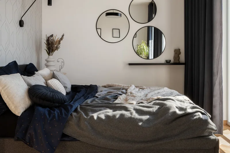 Декорирование стены спальни с помощью зеркал. Источник фото: 123rf.com