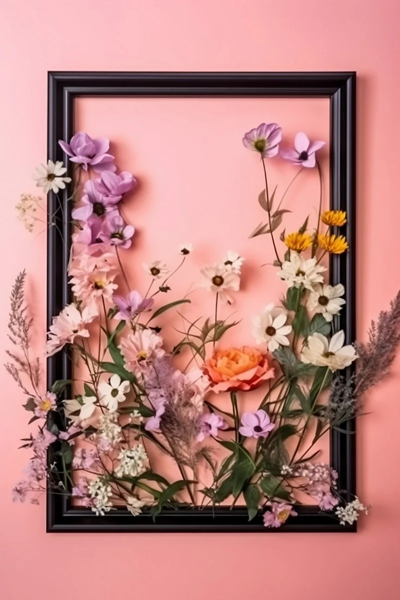 Разместите на стене композицию из прозрачных емкостей с цветами. Вы можете выбрать живые цветы или декоративные искусственные растения: они не увянут, их не нужно поливать, и вы можете разместить их где угодно, не беспокоясь о том, хорошее ли освещение в этом месте. Как вариант - размещение на стене рамки, украшенной цветами.