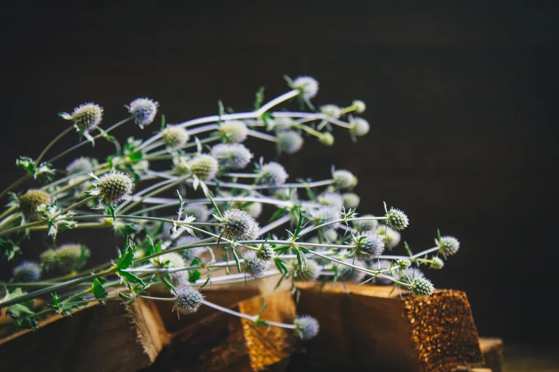 Колючие шарики синеголовника прекрасно контрастируют с нежными сухоцветами, подчеркивая их хрупкость. Ну а если вы хотите показать свой дерзкий характер и составить бунтарский букет, используйте эрингиум сольно. Такое решение будет интересно смотреться в комнате подрастающих мальчиков.