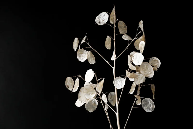 Перламутровые листики лунарии смотрятся роскошно, мерцая в приглушенном вечернем освещении. Их сияние действительно напоминает лунный свет и придает интерьеру загадочности. Этот сухоцвет идеален для создания композиций с использованием высушенных полевых трав и тонких веток темного цвета.