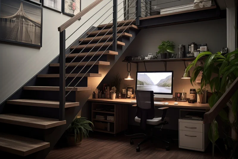 Идея: Превратите пространство под лестницей в компактный домашний офис.