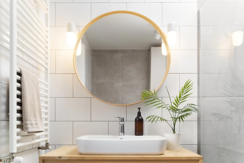 Большие зеркала или несколько зеркал помогают зрительно увеличить пространство и добавляют света. Разместите зеркало над раковиной или на одной из стен, чтобы комната казалась более просторной.
