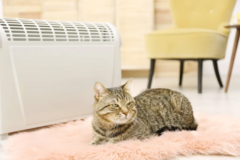 Кошка греется у обогревателя. Источник фото: 123rf.com